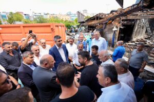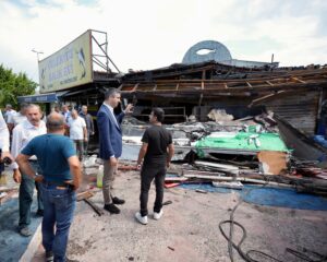 Başkan Gökhan Yüksel, Balıkçılar Çarşısı’ndaki Yangın Sonrası İncelemelerde Bulundu