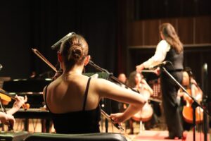 Konser, Sanat Akademisi öğrencilerinin performansları ve Orkestra Şefi Aleksandra Nadin’in piyano eserleriyle başladı. Programın devamında sahne alan flüt sınıfı öğrencileri, öğretmenleri eşliğinde solo ve düet eserlerle izleyicilerle buluştu. Flüt sınıfı öğrencileri; Georges Bizet – “Toreador”, Antonio Vivaldi – “Spring” (Düet) ve Burkina Faso geleneksel eseri “Diarra Loro Lora” eserlerini başarıyla seslendirdi. Flüt sınıfının ardından sahneye çıkan keman sınıfı öğrencileri de öğretmenleri eşliğinde solo performanslar sergiledi. Öğrenciler, C. Gossec – “Gavotte” ile Rieding – “Concert No: 2 in B Minör Op. 35” eserlerini yorumlayarak izleyicilerden büyük beğeni topladı. Keman performanslarının ardından Sanat Akademisi perküsyon grubu, seslendirdiği eserlerle konser programına ritmik ve enerjik bir bölüm kattı.