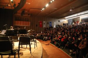 Konserin devamında, Şef Funda Güleryüz yönetiminde Sanat Akademisi Çocuk Korosu, oda orkestrası eşliğinde sahne aldı. “Orda Bir Köy Var Uzakta”, “Gençlik Marşı” ve “Biz Atatürk Gençleriyiz” eserlerini seslendiren koro, performanslarıyla izleyicilerden yoğun alkış aldı. Konserde viyolonselde Yasin Kula, flütte Elif Kay Ergen, fagotta Banu Kara, perküsyonda Pınar Dursun Paksoy, kemanda ise Kahraman Nice Özbay ve Nurhan Gökçe Coşkun yer aldı.