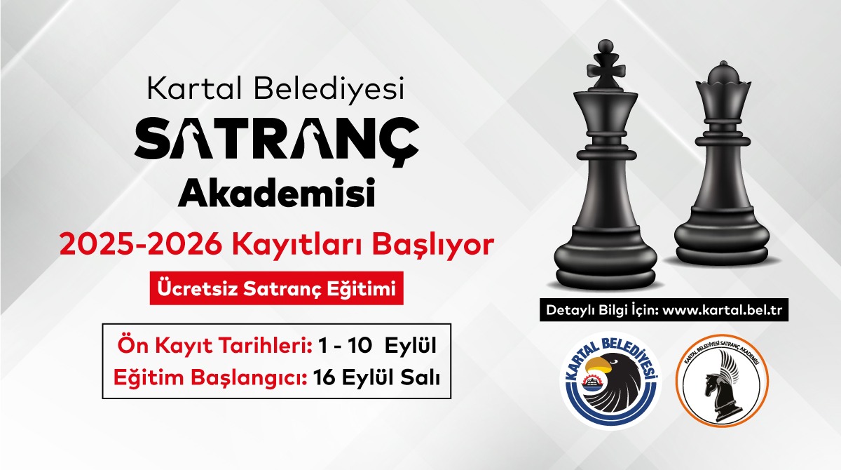 Kartal Belediyesi Satranç Akademisi, yeni eğitim yılı için kayıtları almaya başladı. Çocuklara ve gençlere kritik yaparak analitik düşünce yeteneği kazandırmak amacıyla hayata geçirilen Satranç Akademisi, 1-10 Eylül tarihleri arasında ön kayıt başvurularını alacak.