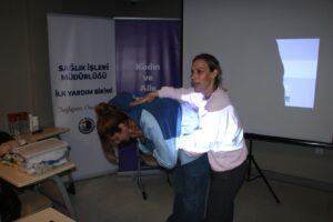 Seminerin ilerleyen bölümlerinde; kanama durdurma yöntemleri, şok, donma ve yaralanmalarda ilk müdahale, temel yaşam desteği basamakları gibi konular pratik uygulamalarla pekiştirildi. Kartallı kadınlar, merak ettikleri soruları uzman eğitmene sorarak doğru bilinen yanlışları öğrenme fırsatı buldu.