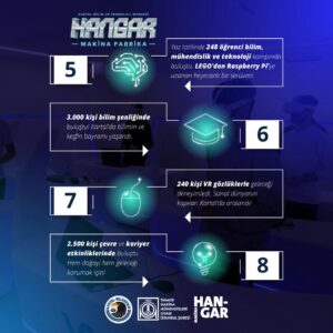 2024 – 2025 eğitim döneminde 11.938 kişi, Makina Hangar’da düzenlenen atölye, etkinlik ve şenliklere katıldı. Çocuklar ve gençler, hem bilimsel deneylerle hem de teknoloji tabanlı projelerle geleceğin dünyasına hazırlık yapma fırsatı buldu.