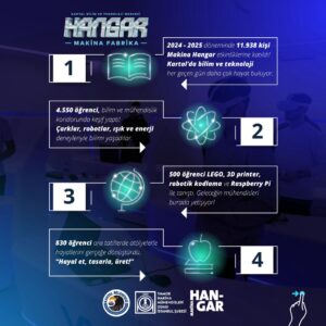 “Göreve geldiğimiz günden bu yana en büyük hedeflerimizden biri, çocuklarımızı ve gençlerimizi geleceğe hazırlamak oldu. Çünkü biliyoruz ki, yarının dünyasında ayakta kalmanın yolu bilimden, teknolojiden ve üretimden geçiyor. Makina Hangar’ı bu amaçla hayata geçirdik. Burada bir araya gelen her bir öğrencimiz hem bilimin ışığını görüyor hem de kendi potansiyelini keşfediyor. Geleceğin mühendislerini, bilim insanlarını ve girişimcilerini Kartal’da yetiştirmenin gururunu yaşıyoruz. Kartal’ı sadece İstanbul’un değil, Türkiye’nin bilim ve teknoloji merkezlerinden biri haline getirmeye kararlıyız.”