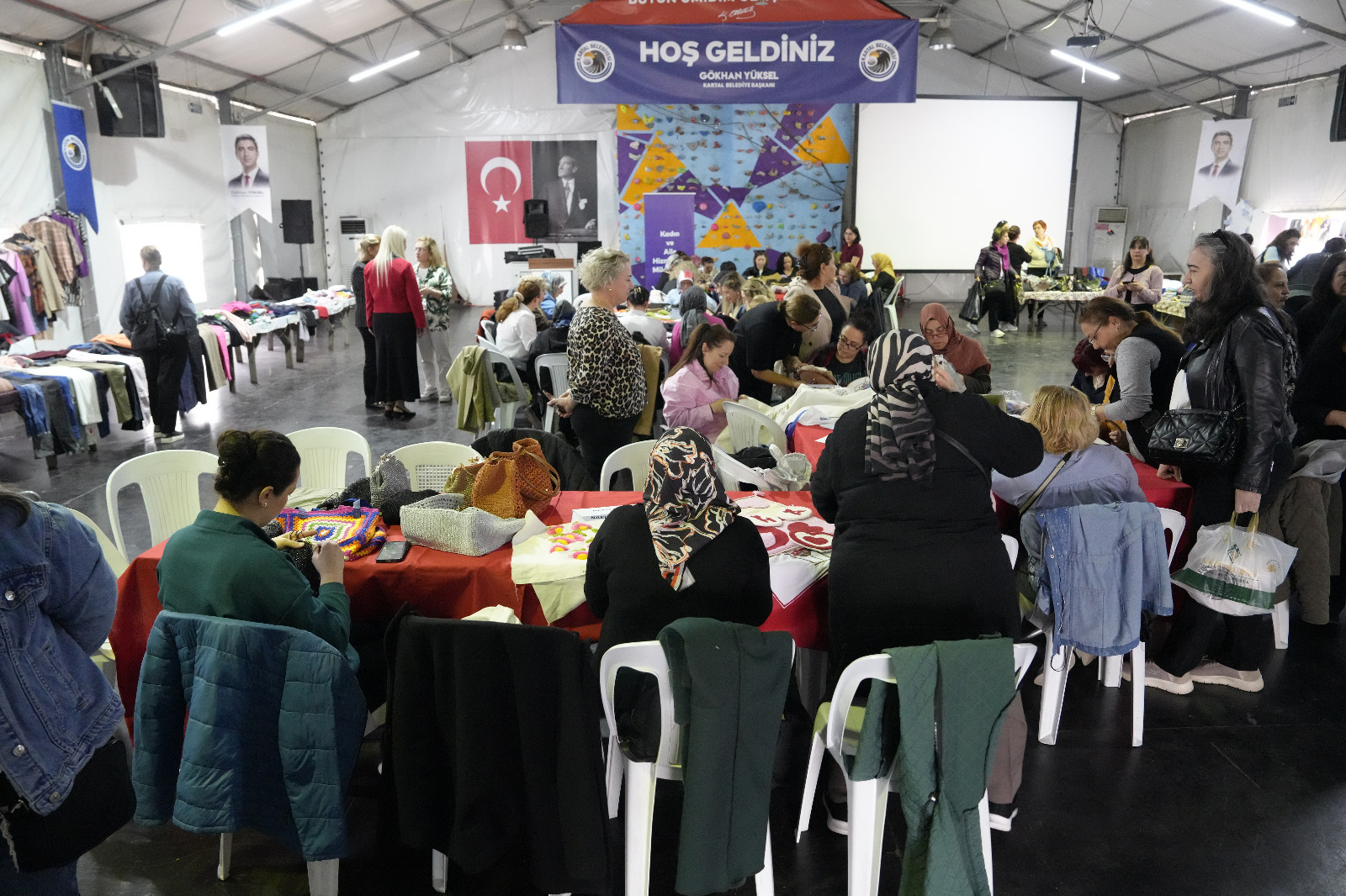 Kermeste, Kartal Belediyesi’nin kadınların sosyal ve ekonomik hayata katılımını artırmak amacıyla başlattığı “Malzemeni Al Gel” atölyeleri büyük ilgi gördü. Örgü, punch, nakış ve tel kırma gibi alanlarda üretim yapan kadınlar, hem el emeği göz nuru ürünlerini sergileme hem de üretim süreçlerini katılımcılarla paylaşma imkânı buldu.