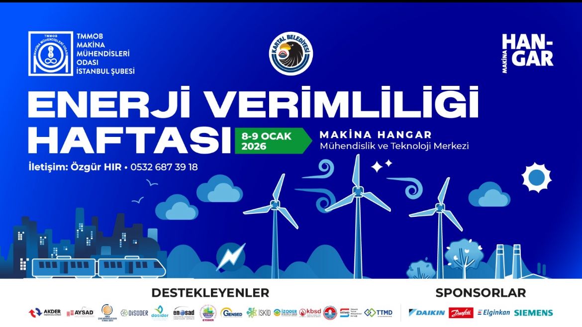 Kartal Belediyesi ve Makina Mühendisleri Odası İstanbul Şubesi Enerji Komisyonu iş birliğiyle; Enerji Verimliliği Haftası kapsamında Kartal’da bir dizi etkinlik düzenlenecek. Enerji kaynaklarının verimli kullanımına dikkat çekmek amacıyla yapılacak olan etkinlikler, 8-9 Ocak 2026’da Kartal Mühendislik ve Teknoloji Merkezi Makina Hangar’da gerçekleştirilecek.