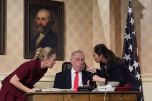 Oyunun dikkat çekici kurgusu, izleyicileri alternatif bir evrene taşıyor. 3. Dünya Savaşı’nın beklenmedik bir şekilde çevreci aktivistlerin eylemleriyle sona erdiği ve ülkelerin isimlerinin değiştirildiği distopik bir dünyada geçen hikaye, Süperland başkanlık ofisinde yaşanan kaotik olayları konu alıyor. Ancak asıl komedi, ‘Çılgın Kızarmış Tavuk’ adlı absürt bir virüsün ortaya çıkmasıyla patlak veriyor. Bu sıra dışı virüs, başkanlık ofisini adeta cehenneme çeviriyor. Durmadan çalan telefonlar, yanlış anlamalardan doğan komik durumlar ve bir türlü tutmayan planlar, seyircileri kahkahaya boğan bir kaos sarmalı yaratıyor.