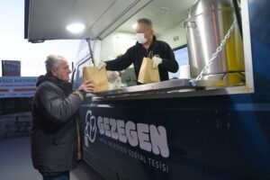 Koşuyolu Kalp Hastanesi Otoparkı’nda kurulan sabit iftar ve sahur alanı; özellikle hasta yakınları, sağlık çalışanları ve iftar saatinde evine yetişemeyen vatandaşlar için önemli bir buluşma noktası oldu. Kartal Belediyesi personeli tarafından özenle hazırlanan iftar menüleri, düzenli organizasyon ve titiz bir planlamayla vatandaşlara hizmet verdi.