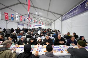 Kartal Belediyesi’nin bir diğer sabit iftar noktası olan Yalı Yunus Topselvi Kültür Merkezi bünyesindeki Taziye Evi’nde de vatandaşlar yine aynı sofrada buluştu. Uzun masaların yan yana kurulduğu alanda ezan öncesi sessiz bir bekleyiş hâkim olurken, aileler ve komşular birlikte iftar saatini bekledi.