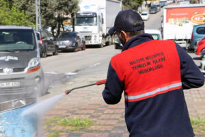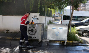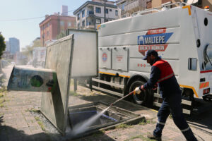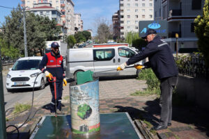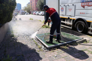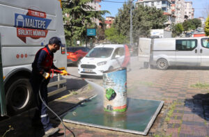 Mahalle genelindeki hem yer altı hem de yer üstü çöp konteynerleri, özel donanımlı araçlarla yerinde yıkandı ve dezenfekte edildi. Ayrıca çalışmalar esnasında toplu temizlik ekibi, mahalledeki boş arsalarda biriken çöpleri de topladı. Kötü koku ve bakteri oluşumunun önüne geçmeyi hedefleyen bu uygulama, mahalle sakinlerinden tam not aldı.