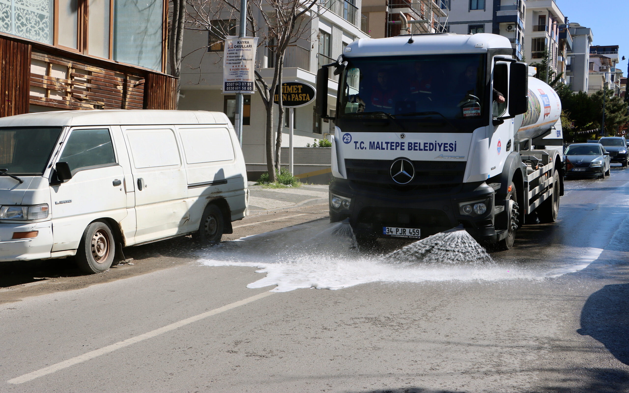 Sabahın erken saatlerinde başlayan çalışmalarda, Cevizli Mahallesi’ndeki ana arterler ve ara sokaklar süpürme araçları ve personel desteğiyle temizlendi. Çalışmalar kapsamında yollar tazyikli suyla yıkandı.